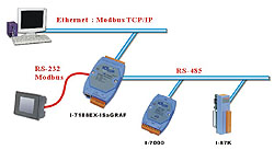I-7188E -MTCP 作为一个Modbus/TCP的转换器。